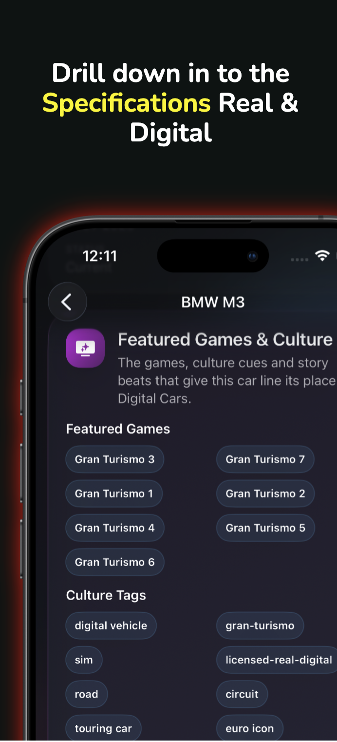 Enter information about your car, road trip recording, reminders on Vehicle Tax, MOT and service records, store car photos, and explore a huge car database covering JDM, European, American and motorsport icons. Visit a car show, take a photo add it to the app and gain digital download freebies.